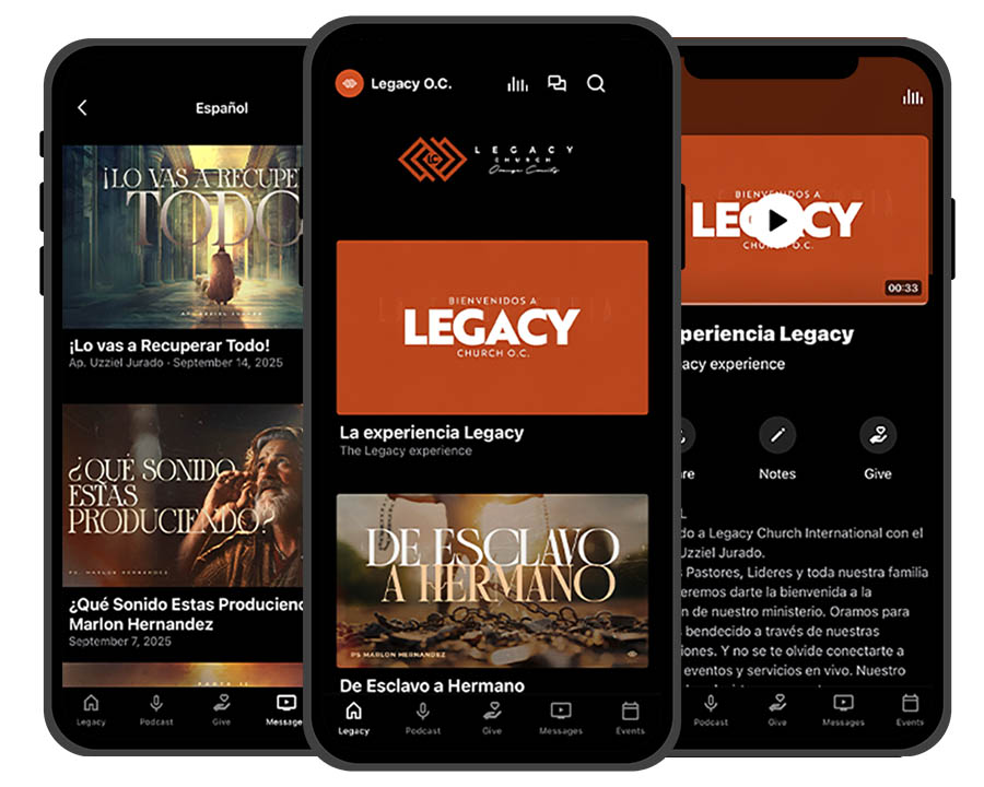 Accede al contenido más reciente de Legacy Church. Esta aplicación está llena de recursos valiosos y contenido que te ayudara a crecer en tu fe, ¡cuando y donde quieras!
